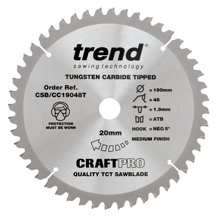 Trend Craft Pro saw blade – 190mm diameter 20mm bore 48tooth TCT