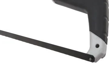 Fitted with a comfortable non-slip handle and front grip ensures positive handling and control. The hacksaw front handle can become a pistol grip jab saw. You can also attach a long reach blade to the front frame. It also features on-board blade storage.